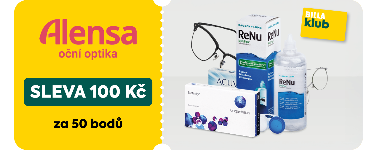 - Slevu lze uplatnit na Alensa.cz a v kamenných optikách Alensa.