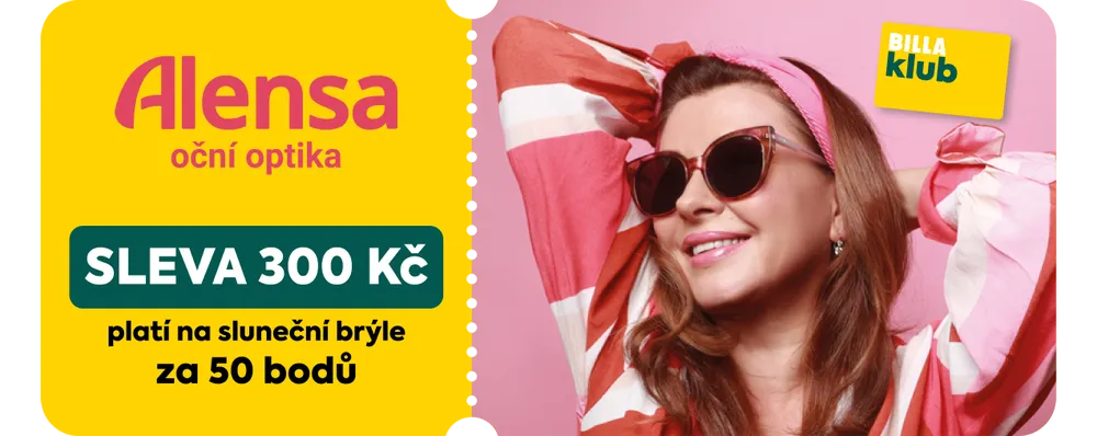- Slevu lze uplatnit na Alensa.cz a v kamenných optikách Alensa.