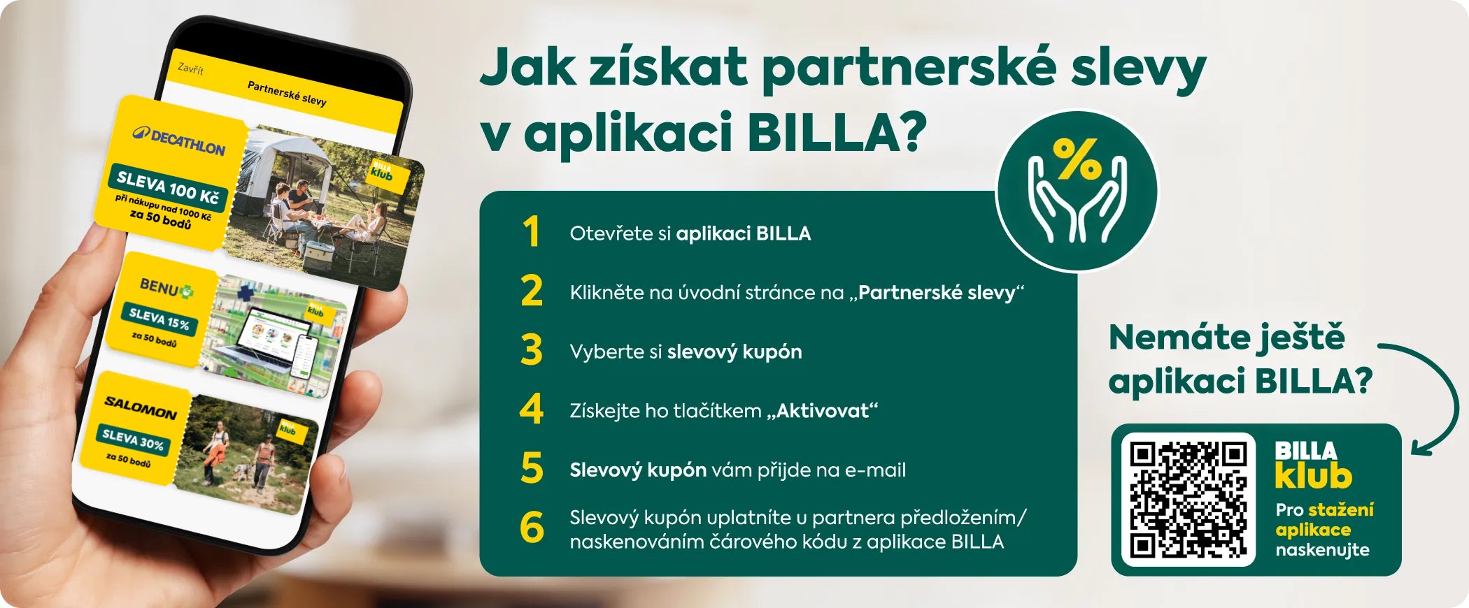 Stáhněte si aplikaci BILLA a vyměňte body za nákupy za výrazné slevy u našich partnerů. Aktuální přehled kuponů a podmínky jejich využití najdete níže.