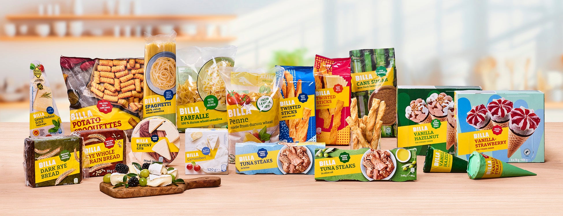BILLA nabízí více než 400 produktů vlastní značky, které zahrnují vše od základních potravin, koloniálu, mléčných výrobků, pečiva a sušenek až po drogerii a krmivo pro domácí mazlíčky. Všechny produkty jsou pečlivě vybírány s důrazem na čerstvost a kvalitu, aby poskytly výhodný a zároveň spolehlivý nákup pro celou rodinu.