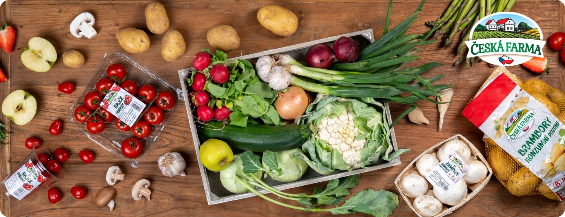 Čerstvá, plná chutí a vůní, to je zelenina a ovoce od českých farmářů. Pod označením „Česká farma“ najdete sezónní ovoce a zeleninu, které pochází výhradně od lokálních dodavatelů. Díky tomu máte jistotu, že kupujete ty nejčerstvější a nejlepší plody.