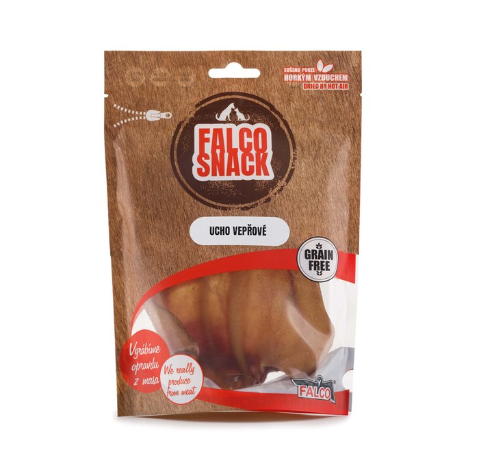 Sušená pochoutka v podobě vepřového ucha. Závěs obsahuje 1 ks sušeného vepřového ucha. Jedná se o čistě přírodní produkt. Veškeré sušené masové pochoutky jsou sušeny pouze horkým vzduchem bez přidaných látek, není použita žádná chemie. K sušení se používá moderní technologie pro uchování velkého množství vitamínů. Jsou vhodné pro každodenní konzumaci nebo jako pamlsek pro zpestření stravy. Posilují nejen žvýkací svalstvo, ale mají i blahodárné účinky na organismus Vašeho mazlíčka. FALCO sušené pochoutky mají trvanlivost 2 roky.