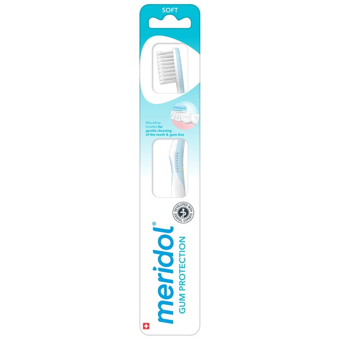 Zubní kartáček meridol® je ideálním doplňkem pro péči o zuby i dásně. Zubní kartáček čistí obzvlášť důkladně včetně okrajů dásní a zároveň chrání podrážděné dásně. Pomáhá tak předcházet krvácení a dalším problémům dásní.
