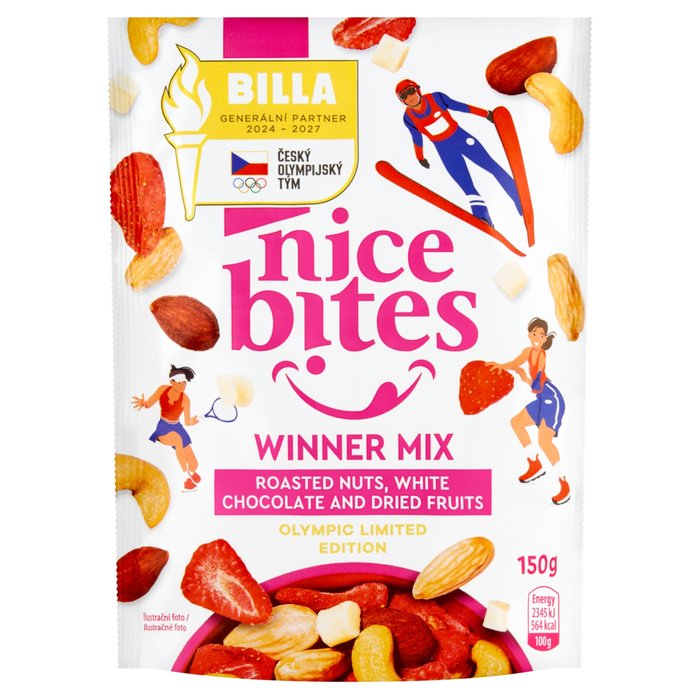 Nice Bites Směs pražených jader skořápkových plodů, kousků bílé čokolády a sušeného ovoce 150g