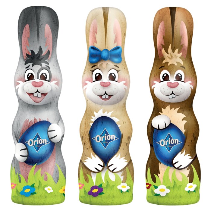 Figurka z lahodné mléčné čokolády ORION v tradičním designu zajíčka by neměla chybět v žádné velikonoční nadílce. Nadělte letos opravdovou radost v podobě lahodné čokolády ORION a vychutnejte si sváteční chvíle s dětmi, rodinou i přáteli.