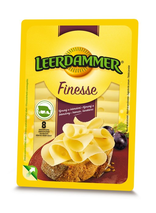 Sýr Leerdammer je vyráběn v Holandsku z mléka od lokálních farmářů. To pochází výlučně od krav, které se volně pasou na pastvinách. (Minimálně 120 dní v roce, alespoň 6 hodin denně), Polotvrdý zrající plnotučný sýr plátkový.