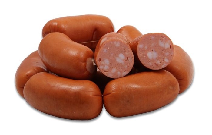 Vepřové výsekové maso 38%, vepřové syrové sádlo, hovězí výsekové maso 19%, pitná voda, jedlá sůl, konzervant: E250, jodičnan draselný, bramborový škrob, stabilizátor: E450, směs koření a směs extraktů koření, dextróza, aroma, cukr, antioxidant:E300, rostlinný olej řepkový. Hovězí střevo.