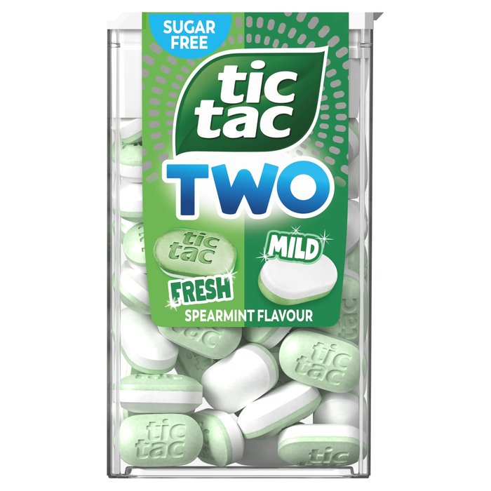 Dvouvrstvé dražé s jemnou sladkou a mátovou příchutí. Se sladidly.