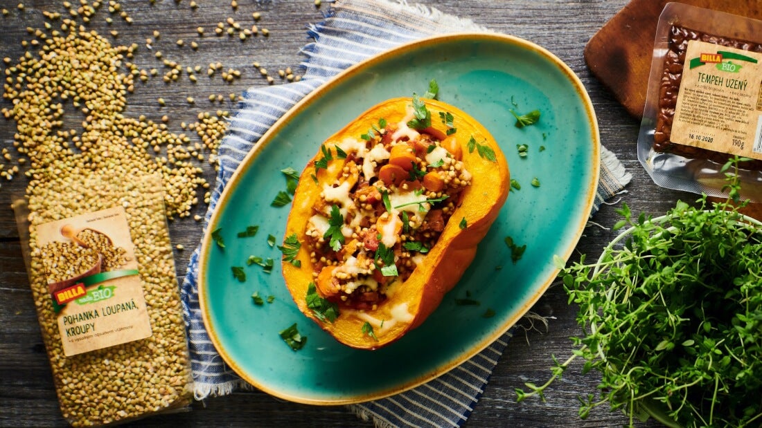 Dýňových receptů existuje nespočet. My jsme pro vás vybrali jeden, velice chutný a jednoduchý. Vyzkoušíte ho s námi? Tak klikněte na fotku naší plněné dýně!