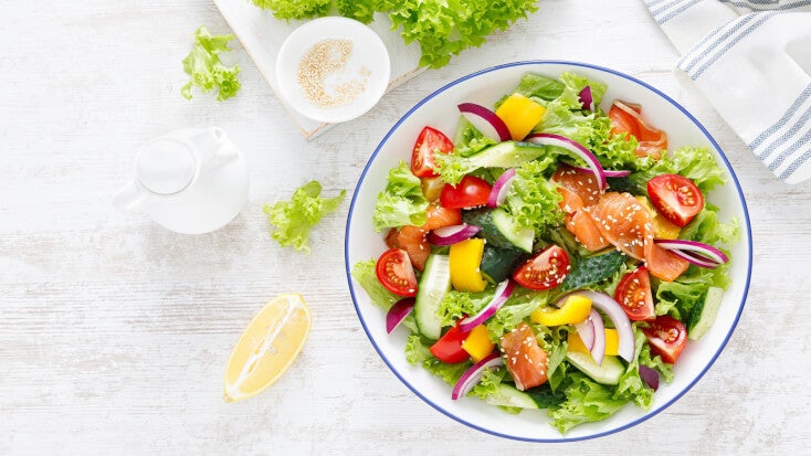 Chcete si dát salát k obědu nebo večeři? Pak nezapomínejte na výše zmíněnou pomůcku v podobě „zdravého talíře.” V salátech totiž často nějaká složka chybí – ať už jde o dostatek bílkovin nebo komplexních sacharidů.