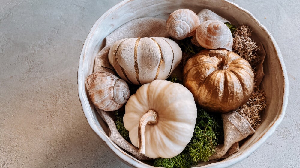 - Dýni si můžete polepit čímkoli vás napadne – od dřevěných korálků přes plyšové kuličky až po barevné třpytky. Pro sjednocení vzhledu pak stačí přestříkat nebo přetřít, aby dýně vytvořily 3D efekt a byly tón v tónu.