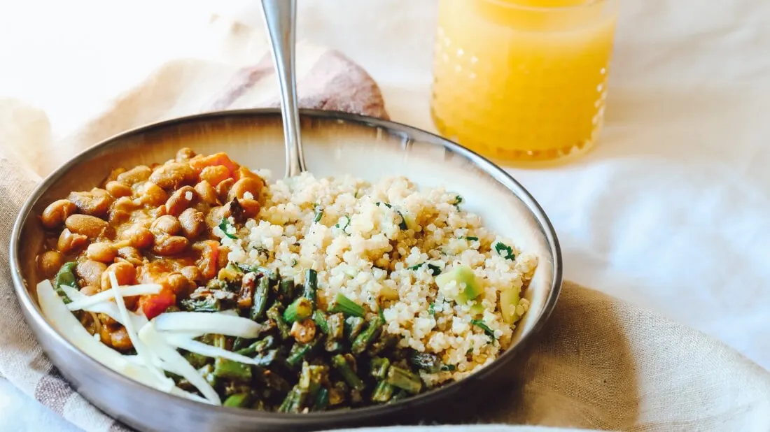 I na oběd byste měli zkombinovat všechny makroživiny. Dopřejte si bílkoviny ve formě tofu nebo seitanu a kvalitní tuky jako je avokádo. Nezapomeňte na komplexní sacharidy v podobě vhodné přílohy: jídlo tak zasytí na delší dobu a dodá potřebnou energii. Vybírejte ze zdravějších verzí, například bulguru nebo quinoy, která je též bohatá na bílkoviny.