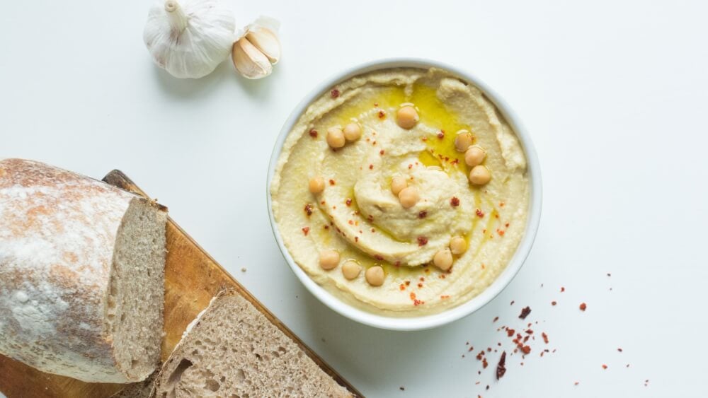 Cizrnu přes noc namočte. Druhý den ji propláchněte a v nové vodě dobře uvařte. Poté sceďte, nechte okapat, vychladnout a důkladně ji rozmixujte. Přidejte utřený česnek, sůl, šťávu z citronu, olivový olej a trochu bílého pepře. Pečlivě vypracujte pomazánku a podávejte s pečivem.