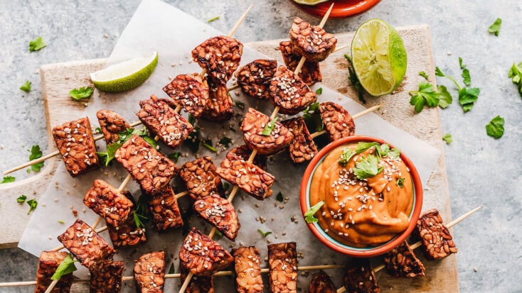 Tempeh vypadá i chutná jinak než tofu. Je hodně specifický už tím, že se vyrábí pomocí fermentace. Pokud bereme tofu jako náhražku tvarohového nebo uzeného sýra, pak tempeh je zajisté variací na hermelín, nivu či plísňový sýr. Je totiž protkaný plísní, která je viditelná už na jeho povrchu. Tempeh jsou vlastně uvařené sójové boby v celku, které jsou dále zpracovány za pomoci plísně Aspergillus oryzae nebo také kulturou Rhizopus oligosporus. O fermentovaných potravinách se obecně ví, že jejich prospěšnost pro zdraví střev je velmi vysoká. Navíc podle prováděných studií bylo zjištěno, že díky přidruženým bakteriím při samotném procesu fermentace se vytváří určité množství vitamínu B12, který jinak výhradně najdeme v živočišných produktech.¹