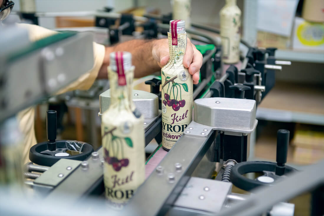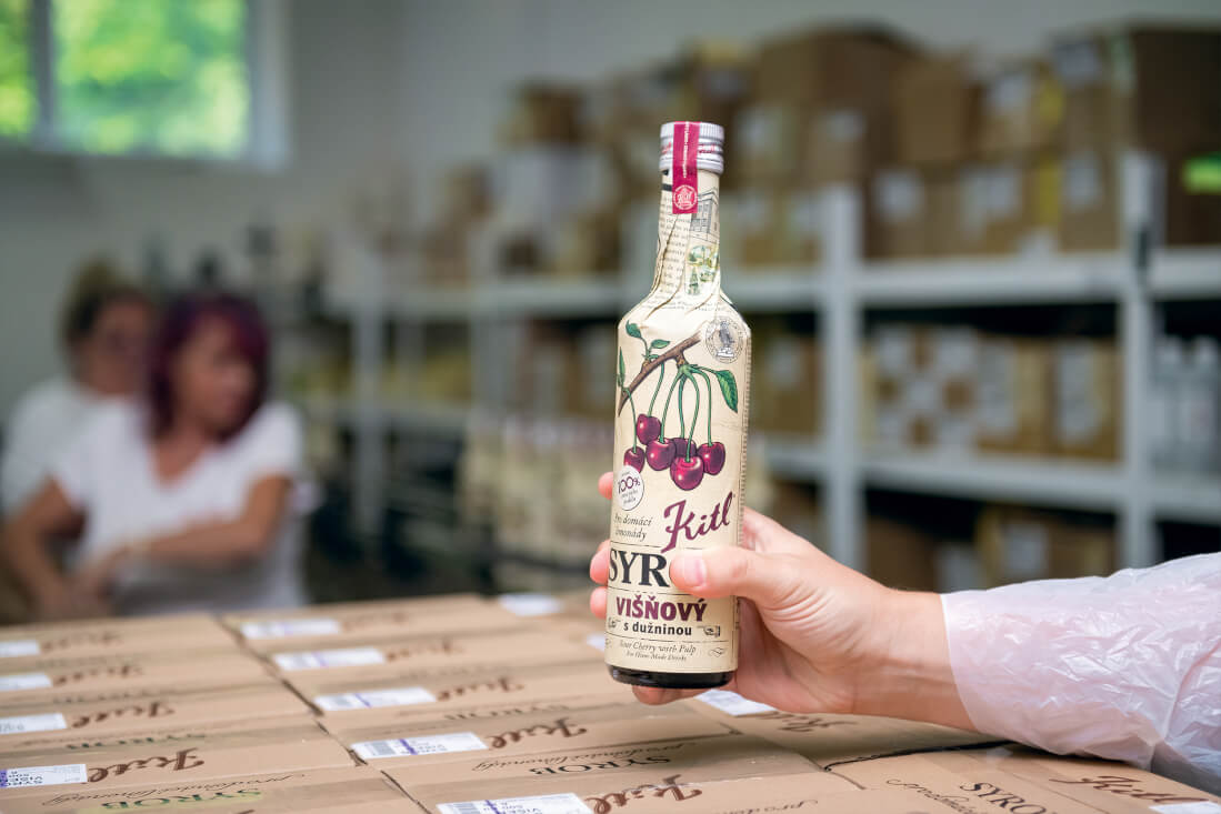 Jan Vokurka nás vede přímo do výroby, kterou se line vůně právě stáčeného višňového sirupu. „Na začátku procesu je potřeba pečlivě omýt a očistit všechny suroviny a vylisovat z nich šťávu. Sirupy se vyrábí zastudena ve velkém nerezovém tanku o objemu 3 000 litrů, kterému se říká duplikátor neboli duplik, a pak se pomocí čerpadel a potrubí dostávají na plnící linku, kde plníme rychlostí 2 000 lahví za hodinu,“ popisuje nápojář. Na lince stroje nejdříve vymyjí prázdné skleněné lahve, pak je naplní sirupem a přidají do nich dusík, který vytvoří ochrannou atmosféru, a nakonec je uzavřou. Lahve pak po lince odjedou do balírny, kde dostanou etiketu, zabalí se do krabic a přesouvají se do skladu, odkud se expedují k zákazníkům. „Vytvořili jsme už desítky verzí etiket a náš etiketovací stroj také neustále vylepšujeme. Snažíme se totiž, aby měl zákazník z našeho sirupu prvotřídní zážitek. Když uvádíme nový produkt na trh, nechceme být jen o kousek lepší než konkurence, chceme být o tři třídy lepší. Proto výrobky dlouho vyvíjíme, hledáme suroviny, ochutnáváme, zjišťujeme informace a porovnáváme. Etiketa musí zákazníka zaujmout nejen na pohled, ale i na dotek. Na designu i výběru papíru si proto dáváme opravdu záležet. Dlouho jsme například vylepšovali i podobu nálevky na hrdle lahve, aby bylo nalévání pohodlné a sirup nestékal po lahvi a nelepil prsty. Hrajeme si zkrátka s každým malým detailem,“ vysvětluje zakladatel firmy. A to se mu vyplácí. Letošní letní limitovanou edici s příchutí okurky vyprodal o měsíc dříve, než bylo v plánu.