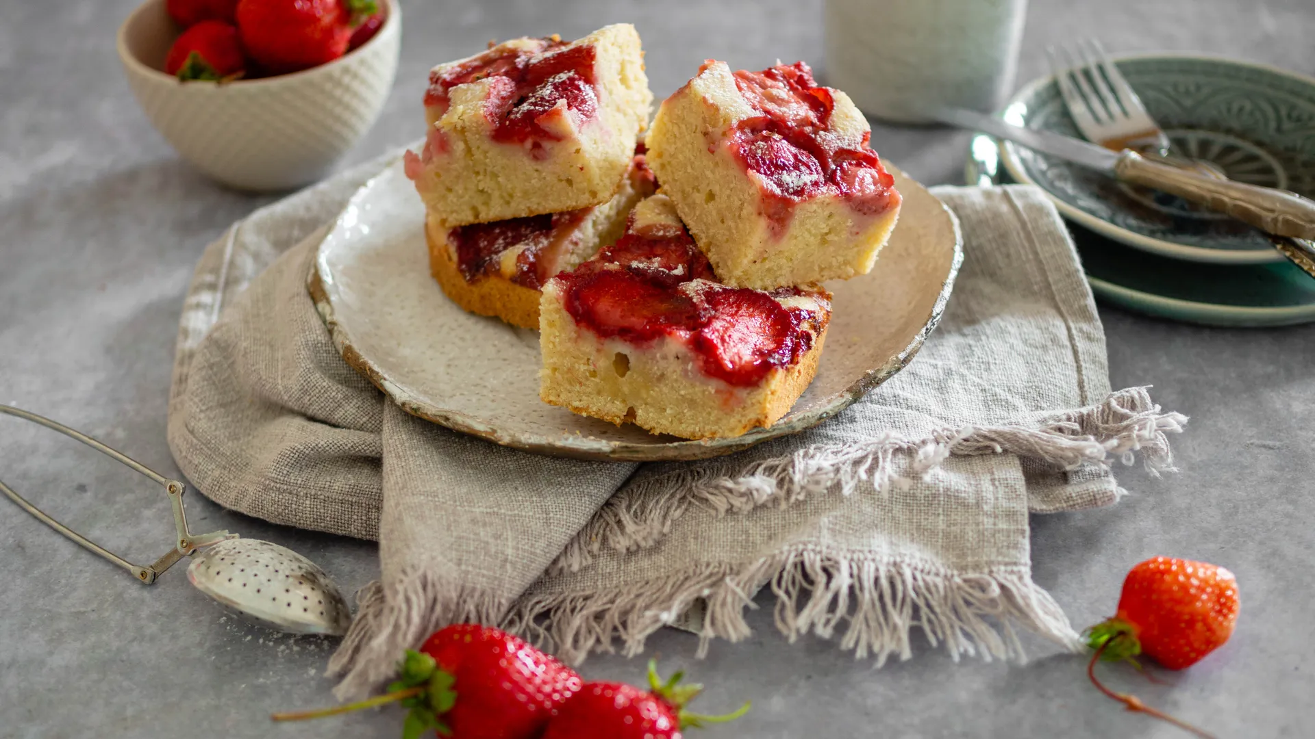 Takto připravené těsto vlijte do formy a poklaďte jahodami.