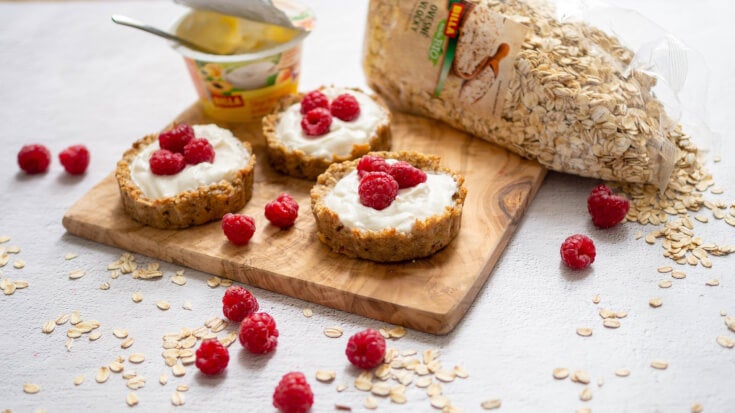 1accessibility.recipes.cookingstepTroubu předehřejte na 200 °C. Ovesné vločky lehce rozmixujte a přidejte k nim rozmačkaný banán.2accessibility.recipes.cookingstepSmíchejte s čekankovým sirupem, skořicí a nechte chvíli odpočinout.3accessibility.recipes.cookingstepFormičky na tartaletky lehce vymažte, pokud máte silikonové, vymazávat nemusíte.4accessibility.recipes.cookingstepTěsto vtlačte do formiček tak, aby bylo rovnoměrně pokryté dno i boky.5accessibility.recipes.cookingstepPečte dozlatova cca 20–25 minut. Každá trouba peče jinak, proto tartaletky hlídejte.6accessibility.recipes.cookingstepMezitím si připravte krém. Jednoduše smíchejte skyr, tvaroh a ricottu.7accessibility.recipes.cookingstepPodle chuti doslaďte čekankovým sirupem.8accessibility.recipes.cookingstepPo upečení nechte tartaletky vychladnout, naplňte krémem, ozdobte ovocem a nechte v lednici vychladit.