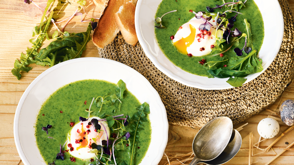 Jemná, krémová a plná jarní svěžesti – špenátová polévka s vejcem potěší nejen milovníky zelené.
