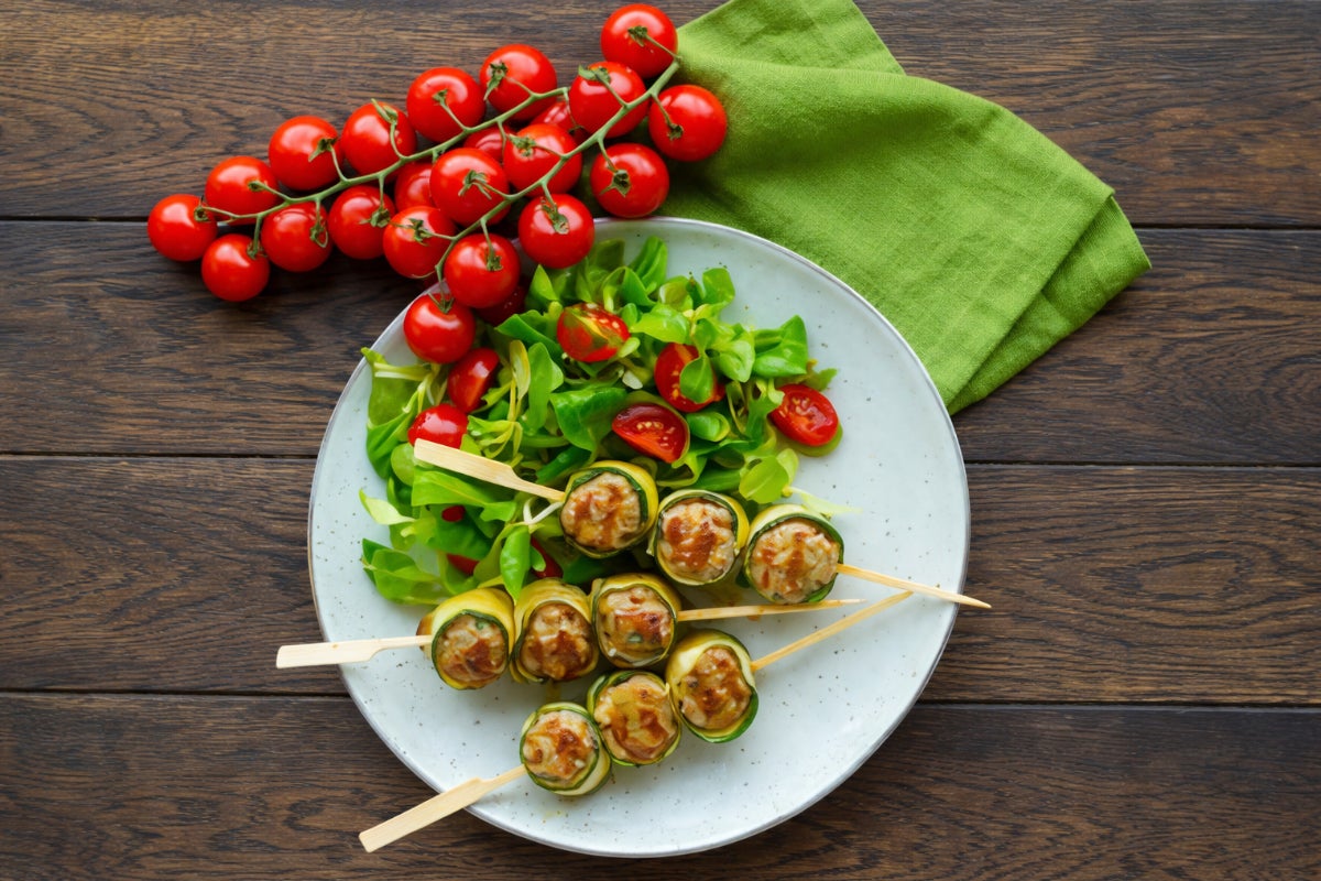 Máte rádi burgery? A co takhle vyzkoušet si připravit mleté burgerové maso trochu jinak. Připravte z něj špízy s cuketou. Rozhodně si na nich pochutnáte a ani vám nebude chybět burgerová bulka.
