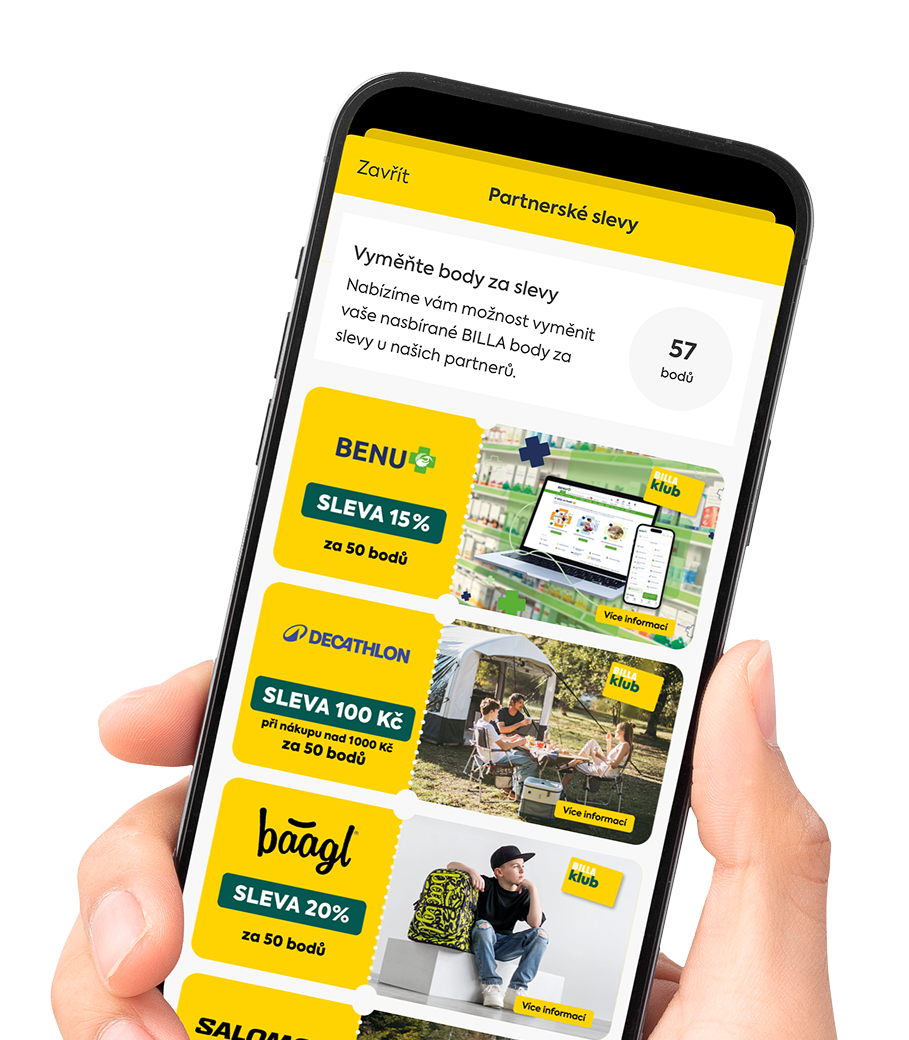 Sbírejte body a užívejte si ještě větších výhod s online účtem BILLA klub. Online účet si můžete spojit se svoji plastovou BILLA kartou a používat ho neomezeně na všech online prostředích BILLA, na stránkách billa.cz, shop.billa.cz nebo v BILLA aplikaci.