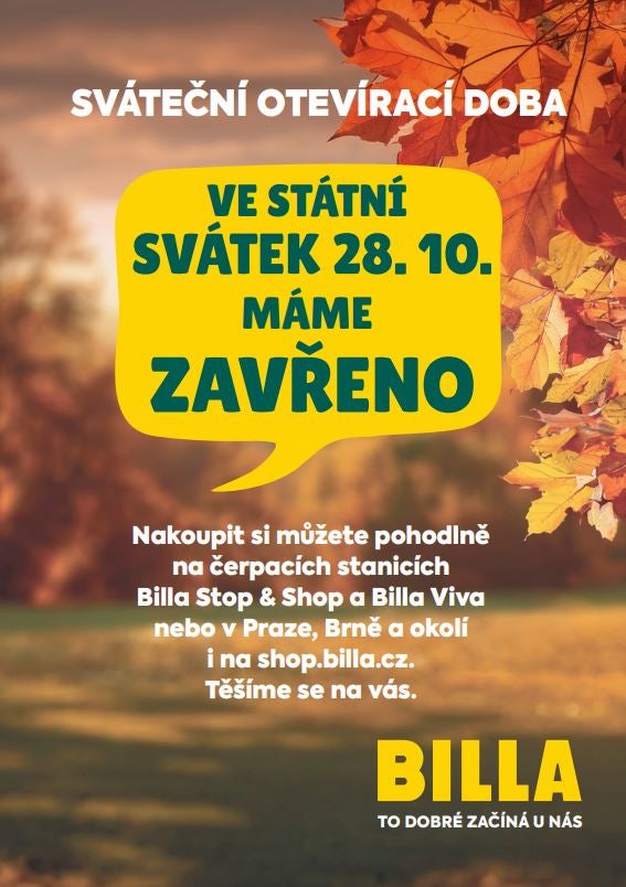 Prodejny BILLA budou 28. října zavřené. Prodeje rostou o více než 20 % na e-shopu shop.billa.cz i na čerpacích stanicích s koncepty obchodního řetězce