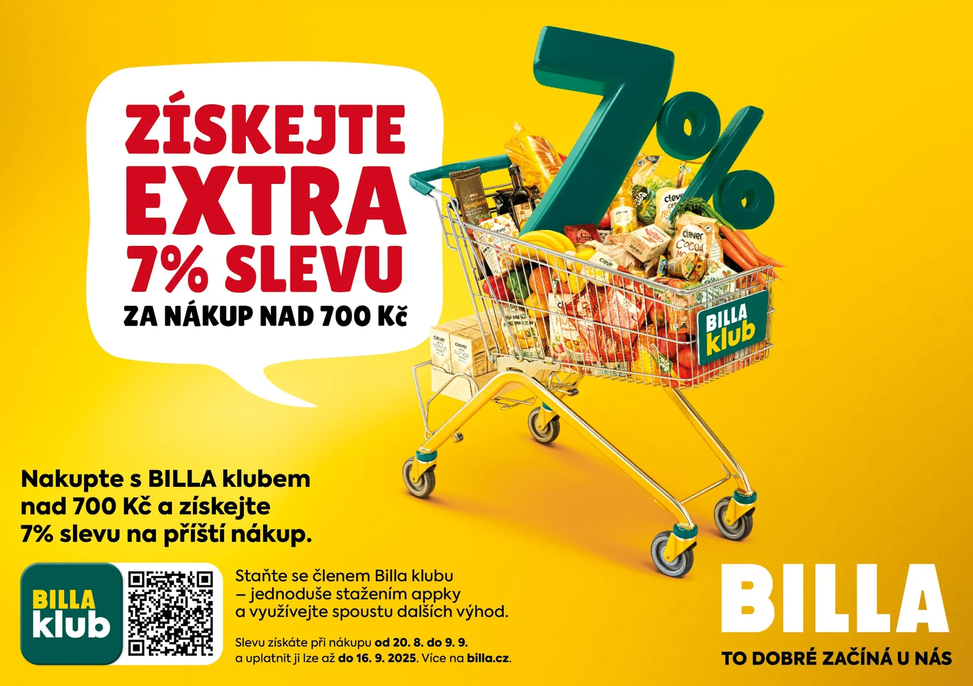 Věrnostní program BILLA klub nabízí svým členům široké spektrum slev a stále přichází s novinkami, které zákazníkům zpříjemňují nakupování. V nové zákaznické kampani mohou členové BILLA klubu jednoduše získat slevu na další nákup. Stačí pouze nakoupit nad 700 Kč a načíst svou BILLA klub kartu. Tuto slevu mají možnost získat opakovaně a uplatnit ji mohou až do 16. září 2025.