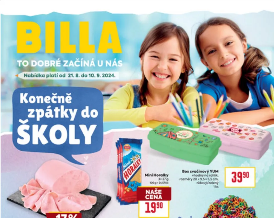 Od 21. srpna na všech svých prodejnách nabízí BILLA desítky produktů také za výhodné ceny se slevou v rámci akční nabídky. Současně připravila vlastní katalog se školními pomůckami „Zpátky do školy“. Na prodejnách je zákazníci najdou v sekci spotřebního zboží, na samostatných stojanech a také v rámci akce s výhodnými produkty.